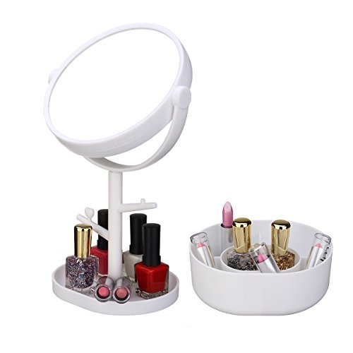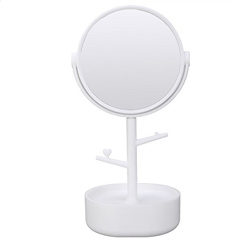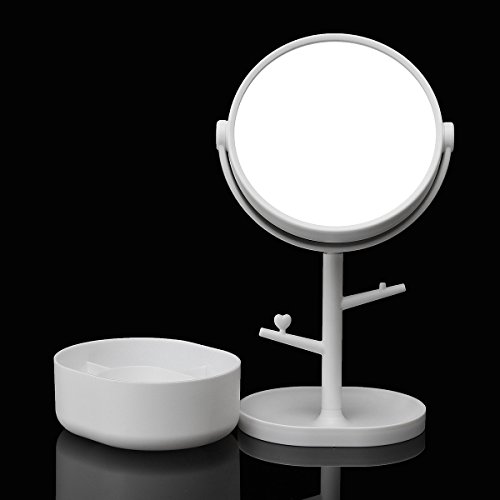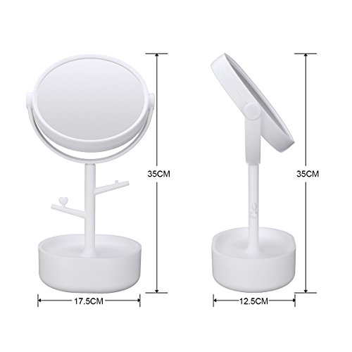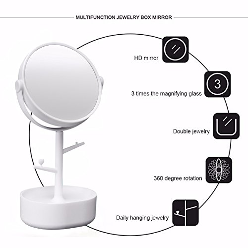Multifunctional Mirror LuckyFine Two-sided Big Makeup Mirror Clear Cosmetics Vanity Mirror With Casket Depositing Your Toiletry Little Things White