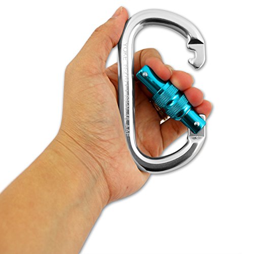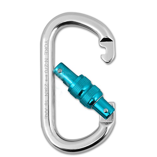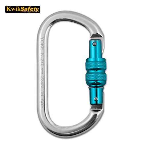 KwikSafety Yoke N-270G Blue Silver Aluminum Alloy Heavy Duty Carabiner | Screw Lock Gate Fall Protection Multi Tool| Rock Climbing Camping Hiking Construction Search Rescue | 23kN