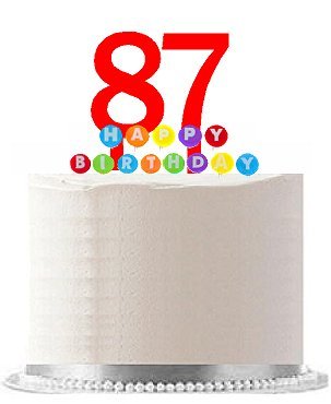 Item#087WCD - Happy 87th Birthday Party Red Cake Topper & Rainbow Candle Stand Elegant Cake Decoration Topper Kit