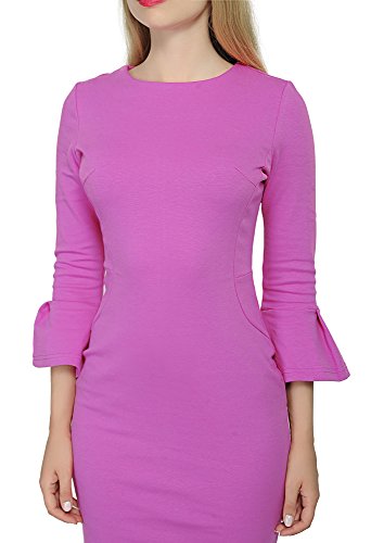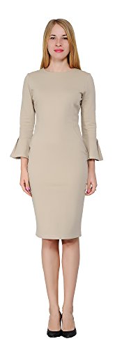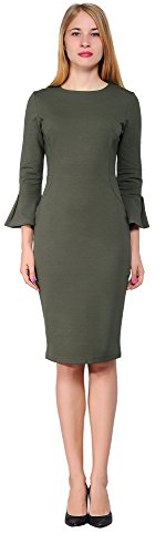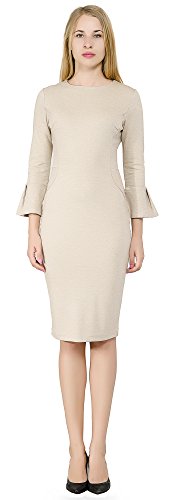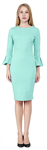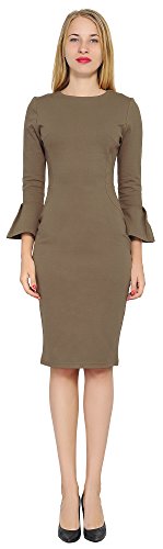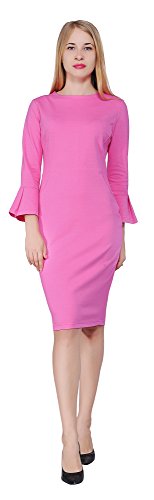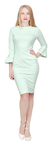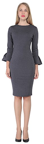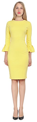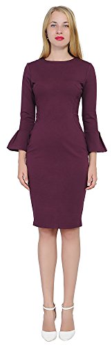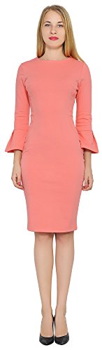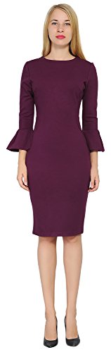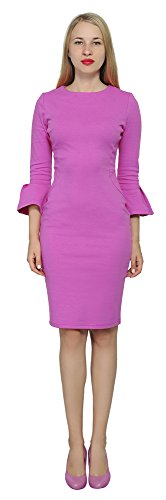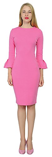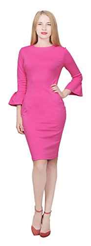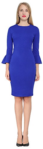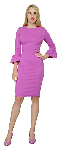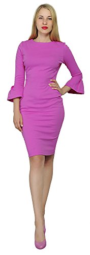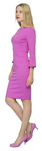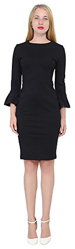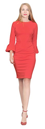 Elegant flounce sleeve pencil mini dress, it features 3/4 flounce sleeves, boat neck, pencil sihouette, short length. It is made of luxury ponte di roma fabric. Dry washing prefered, machine washable (but less durable). Photos say it all.