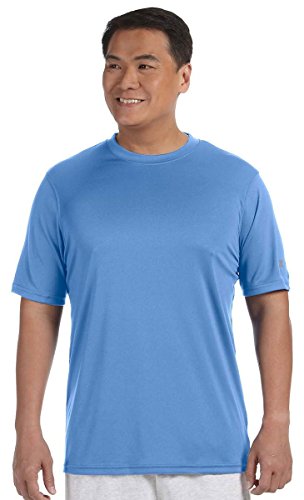 A true workout essential! Engineered with a slimming silhouette that cuts a stylish figure in the gym.Wicks moisture away from the body and helps control moisture buildup.Tag free with self-fabric V-neck collar and neck tape.2-needle hem sleeves and bottom.Feature