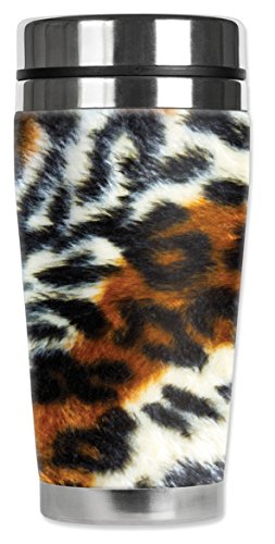 Mugzie 876-MAX "Multi Color Leopard" Stainless Steel Travel Mug with Insulated Wetsuit Cover, 20 oz, Black