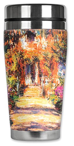 Mugzie 564-MAX "Monet: II Viale del Giandino" Stainless Steel Travel Mug with Insulated Wetsuit Cover, 20 oz, Black