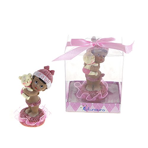-. Title : Lunaura Baby Keepsake - Set of 12 "Girl" Black Ethnic Baby Holding Teddy Bear Favors - Pink