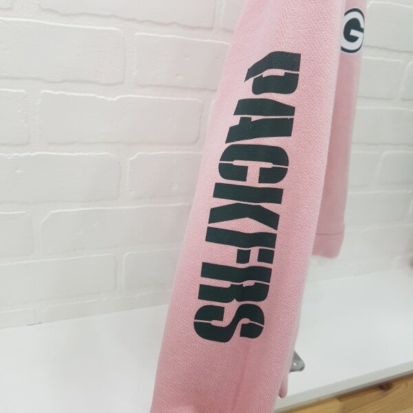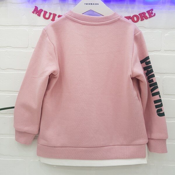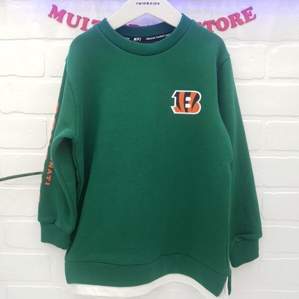 하프기자? 팀마크 레이어드 맨투맨 티셔츠 ,소매 레터링 나염과 앞 팀 마크 나염이 포인트 속 기모로 따뜻하게 착용가능
