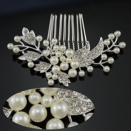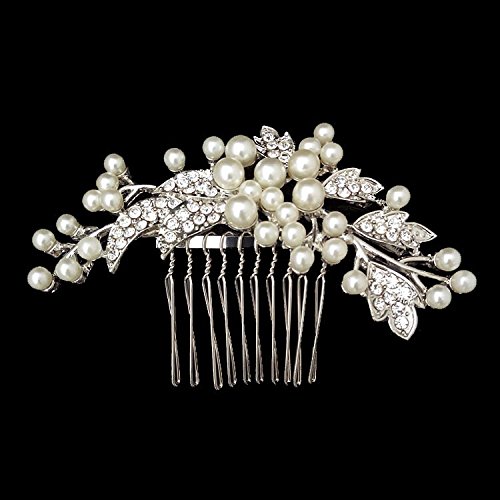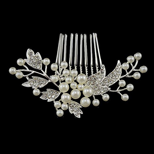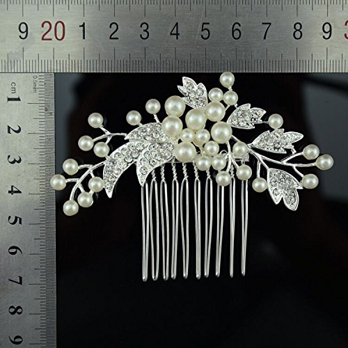 Sunshinesmile Rhinestone Wedding Bridal Hair Comb Pearl Flower Hair Jewelry Crystal Headpiece