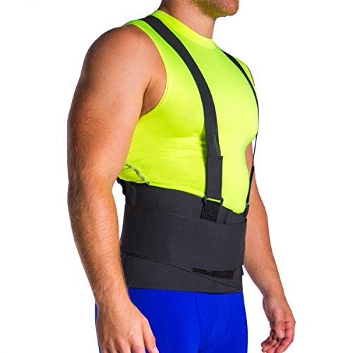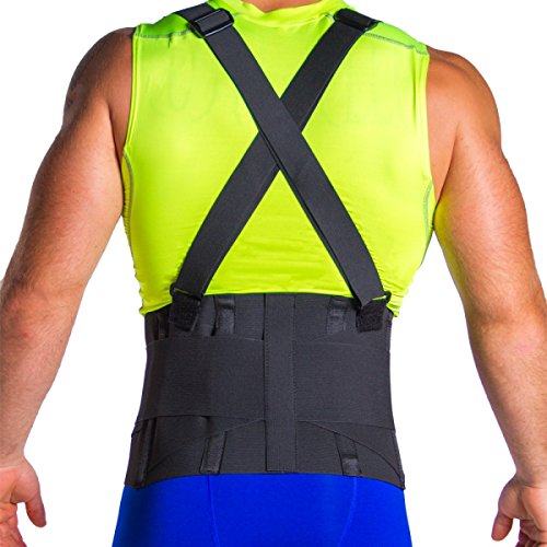 BraceAbility Industrial Work Back Brace | Suspender Straps for Lifting Support, Movers, Warehouse & Construction Jobs (Medium)