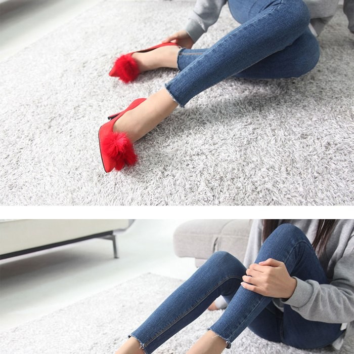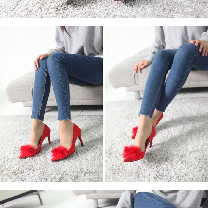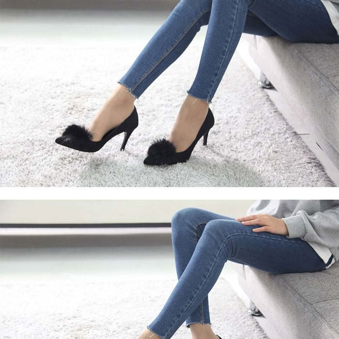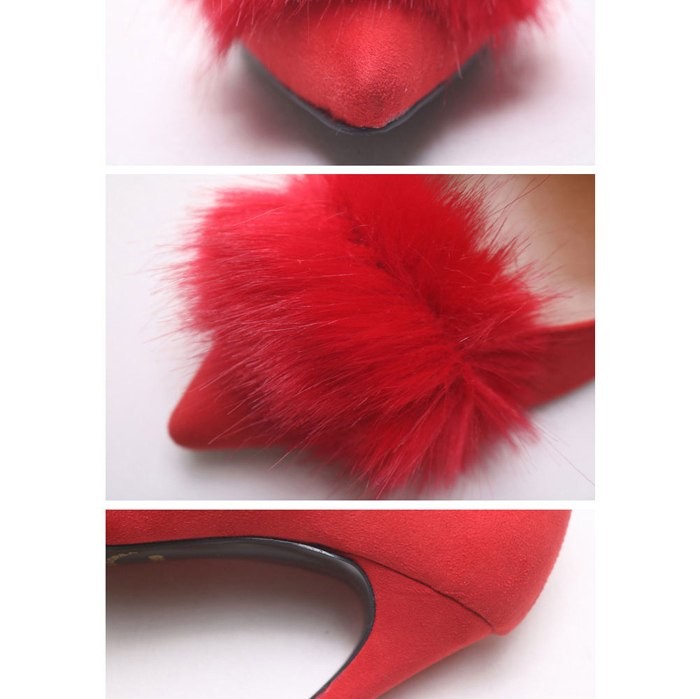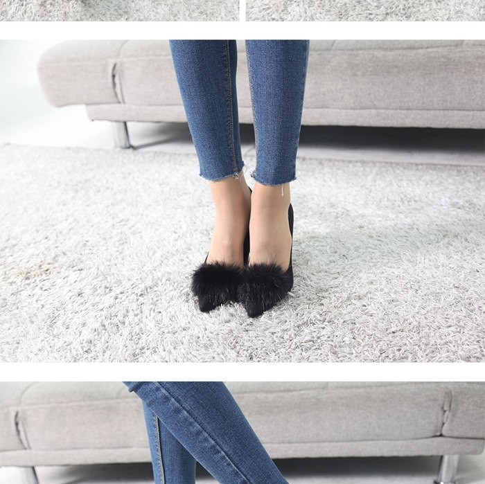 商品名:パンプス レディース ポインテッドトゥ ピンヒール フェイクファー 2017 秋冬 ファッション 靴 婦人靴
