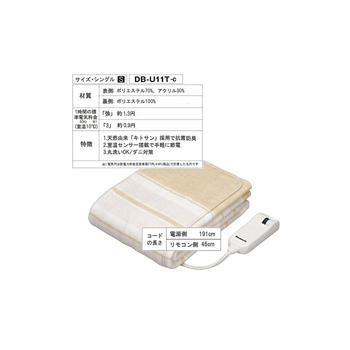 원본상품명: パナソニック 電?しき毛布 140×80cm SEK抗菌防臭加工 ベ?ジュ DB-U11T-C