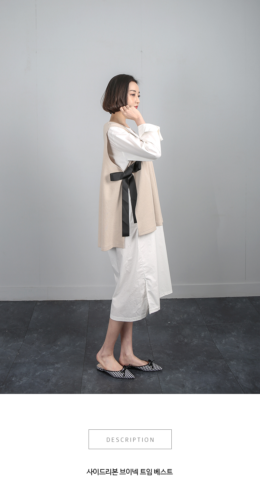 A라인핏의 옆트임 리본 베스트에요