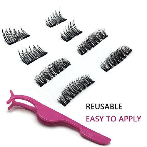 Magnetic False Eyelashes Extension Set with Applicator (8 pieces) Ultra Thin 3D Fiber Reusable Fake Lashes Extension Full Size and Half Size Fake Lashes in One...