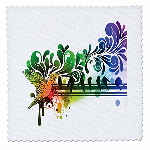 3dRose qs_152346_4 One Pretty Golden Hummingbird Against a Grunge Background with a Green and Blue Flourish-Quilt Square, 12 by 12-Inch