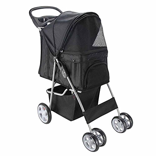 The OxGord Pet Stroller is truly a multifunctional product. ?Mesh screen for breathability ?Folds quickly ?Larger Undercarriage/Basket ?Retractable soft cover hood ?Front Double Wheel for maneuverability ?Rear Brake Lever ?Front and Back Zippered Doors ?Secure Seat Belt Leash ?Mesh Top Window ?Equipped With Cup Holders ? Quality Certified: Meet GB14748 Stroller Safety Standard and Manufactured under GB/T2161 Production Standard. Includes: Pet Stroller Undercarriage/Basket (Collapsed and stored inside of main carriage) Specifications: Model Number: PTST-02-BK Dimensions: Height - 40", Width-11", Depth-18", Front Wheel Diameter-5.75", Back Wheel Diameter-7.75" Carriage Dimension: 20x18x11" Color:Black Weight Capacity: 33lbs Product Weight: 11.3 lbs ?Please Make Sure Stroller Assemble Manual ?Do Not Leave Stroller Unattended ?Do Not Leave Stroller Near Fire Place or Fire Pit ?Do Not Leave Stroller Near Fire Place or Fire Pit ?Manufacturer Weight Capacity is 33 lbs 0
