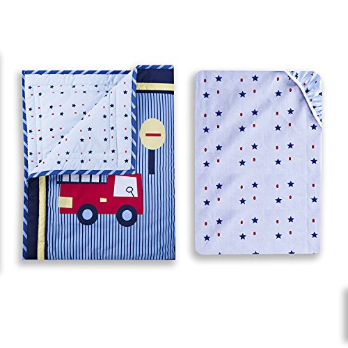 - Feature : Standard playard bedding / Set includes a fitted sheet and comforter / Fits mattresses up to 38" by 26" / Made of 35% cotton and 65% polyester, / Corresponding Dream On Me mattress sold separately