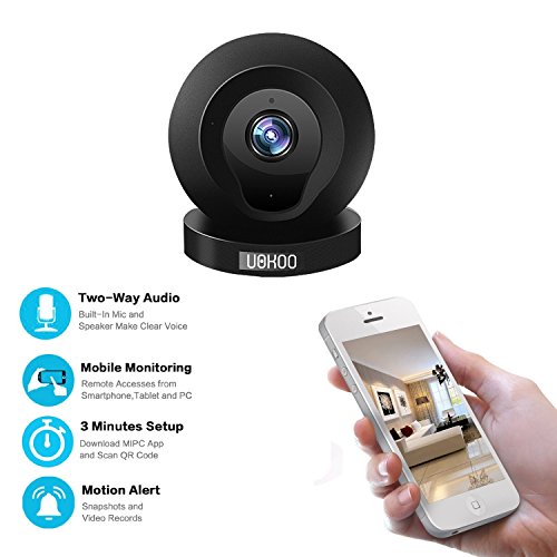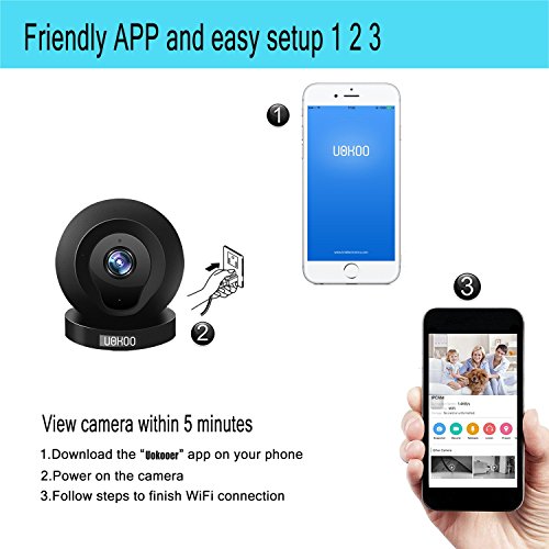 Mini IP Camera, UOKOO 720P WiFi Wireless Network Security Surveillance Video Camera System, Pet and Nanny Monitor with Two Way Audio/Motion Alert/Remote Monitoring Black Q1