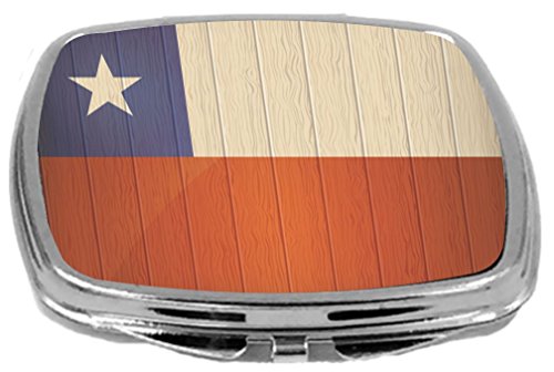 Rikki Knight Compact Mirror on Distressed Wood Design, Chile Flag, 3 Ounce