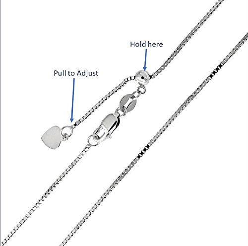 10 Karat White Gold bright-cut Adjustable Box Chain Small Heart Charm (Length: Adjustable 16"-22", Width: 0.80mm, Weight: 2.65 Grams) Adjustable by pulling charm side through round ball. The convenient lobster claw clasp makes it easy to keep this chain necklace where it belongs while taking the hassle out of putting it on and taking it off. This perfect piece of fashion-friendly jewelry always compliments and never overpowers or competes with your outfit. Ideal for parties and everyday use, accentuating whatever you are wearing on any given day. Made in Italy, High Grade Authentic Materials, and The Highest Manufacturing Standards Gift Packaging Included For A Beautiful FinishFeature