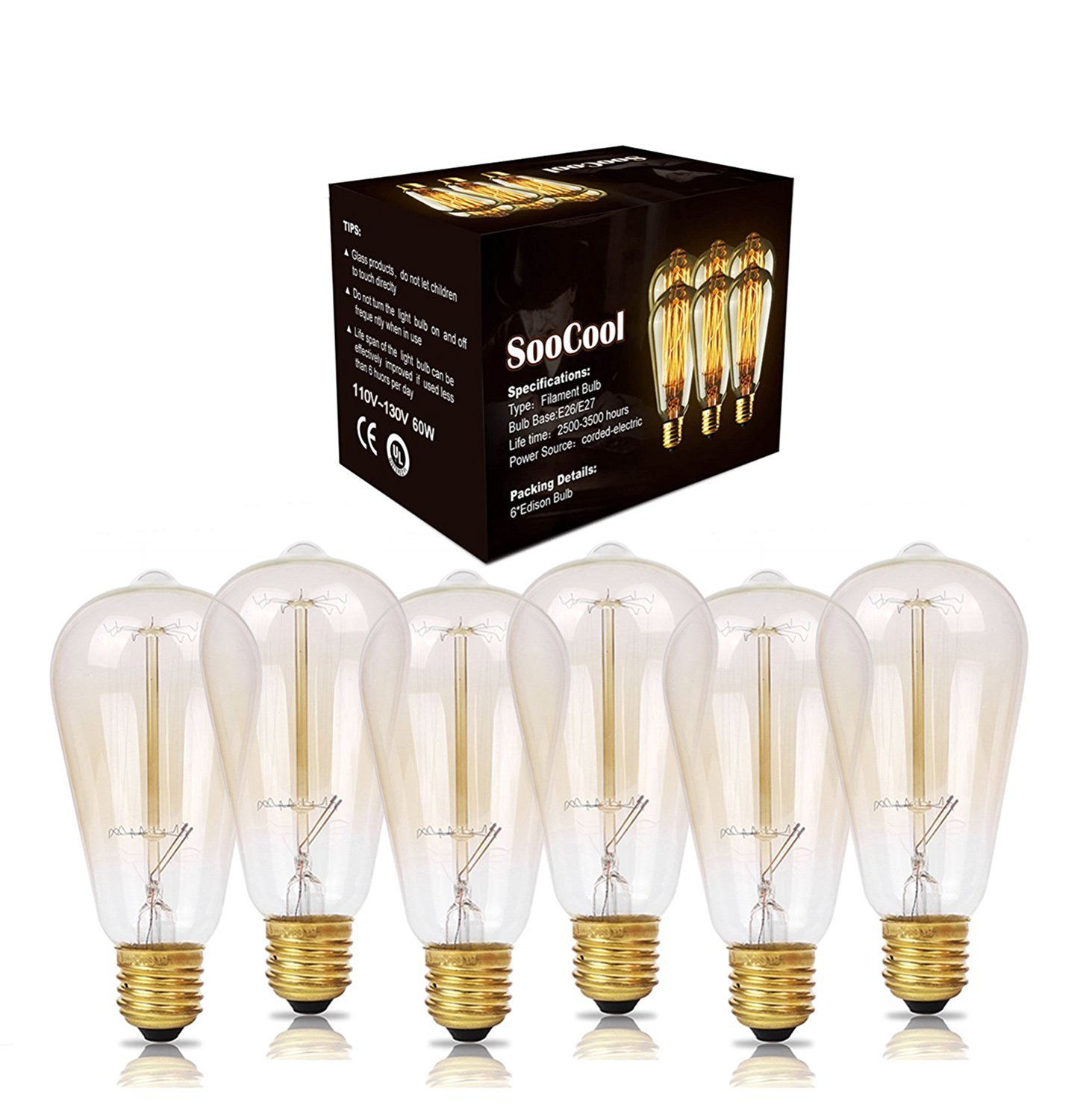 6 pieces included * 60 watts, 110-130 volts, 2.56 (D) * 5.51 (H) inch, medium (E26 / E27) base, 350 men