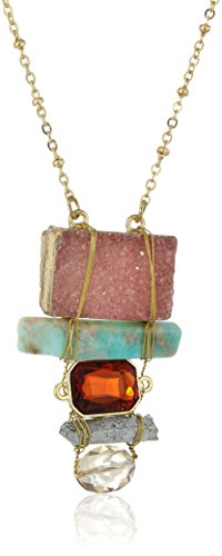 Pink Multicolor Stone Pendant with Faceted Accents on Gold Tone Chain Necklace, 18"+2" Extender