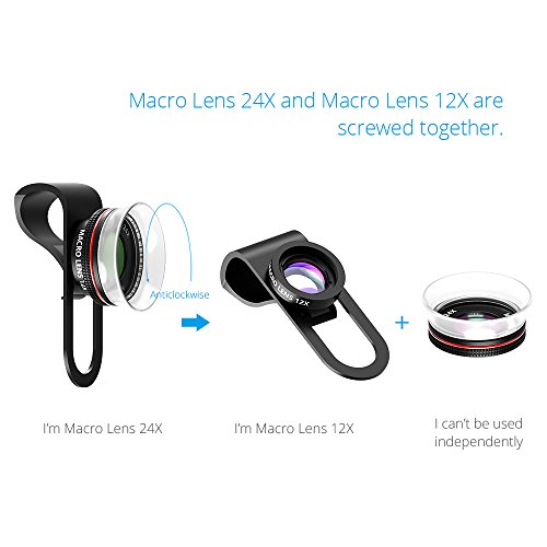 1.The 12X Macro Lens and 24X Super Macro Lens are connected together. When using 24X Super Macro Lens,the 12X Macro Lens and 24X Super Macro Lens must be screwed together.