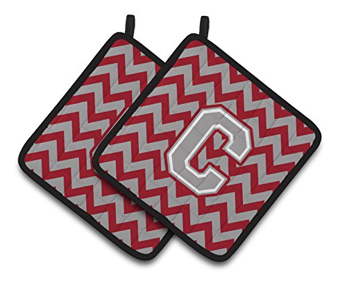 Caroline's Treasures Letter C Chevron Crimson & Grey Pair of Pot Holders CJ1043-CPTHD, 7.5HX7.5W, Multicolor
