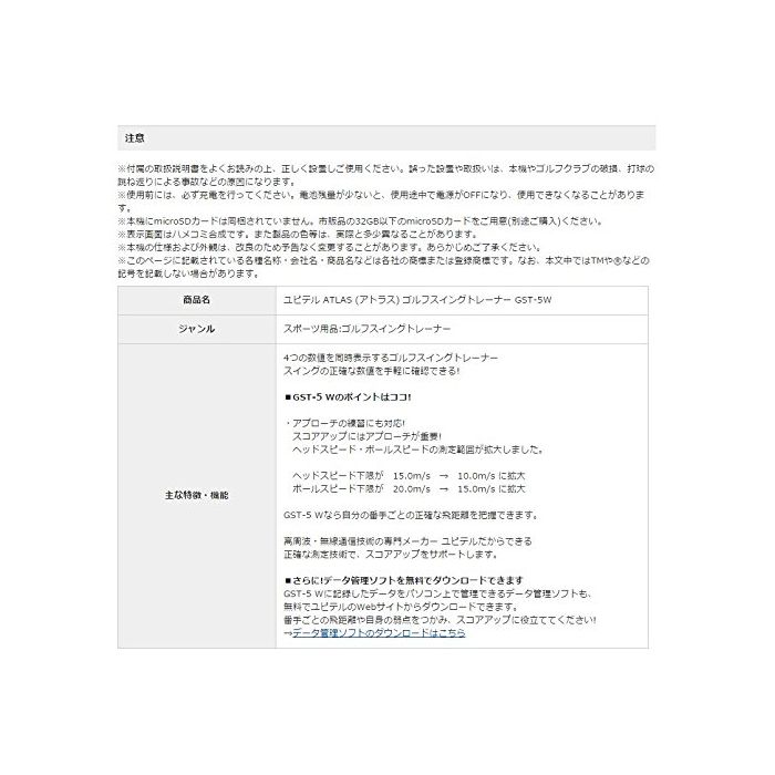 헤드 스피드,볼 스피드,추정 비거리,미토율의 4개를 표시,microSD카드 탑재,PC에 데이터 관리가 가능(무료)