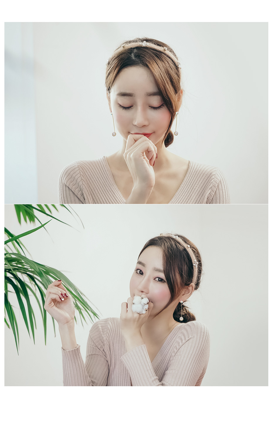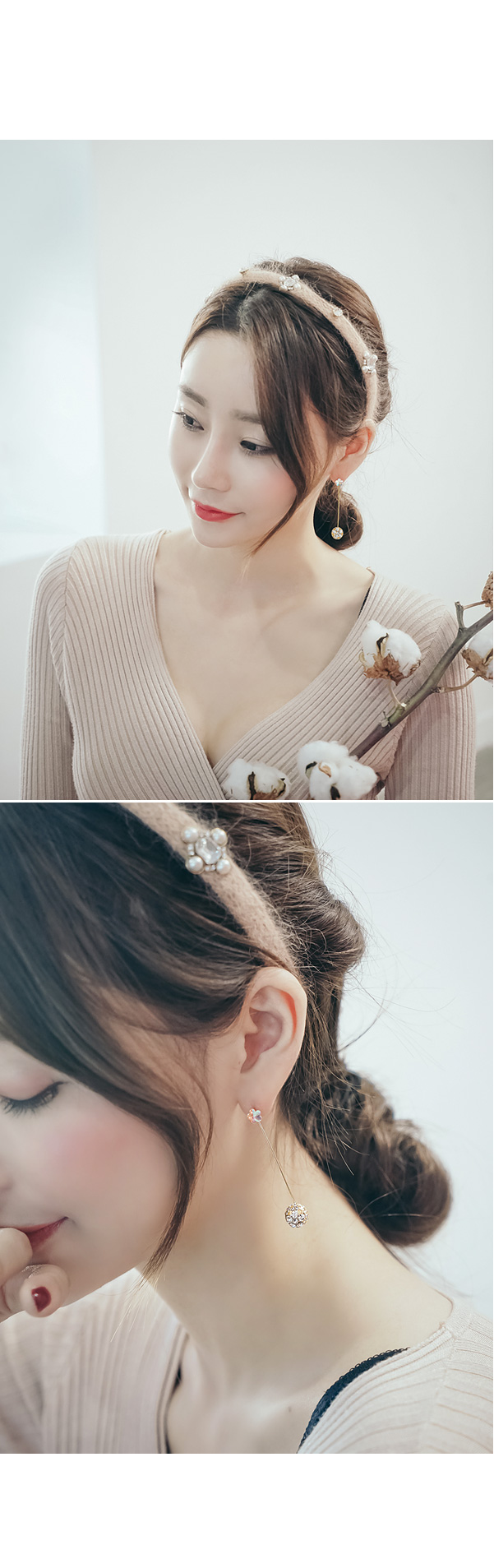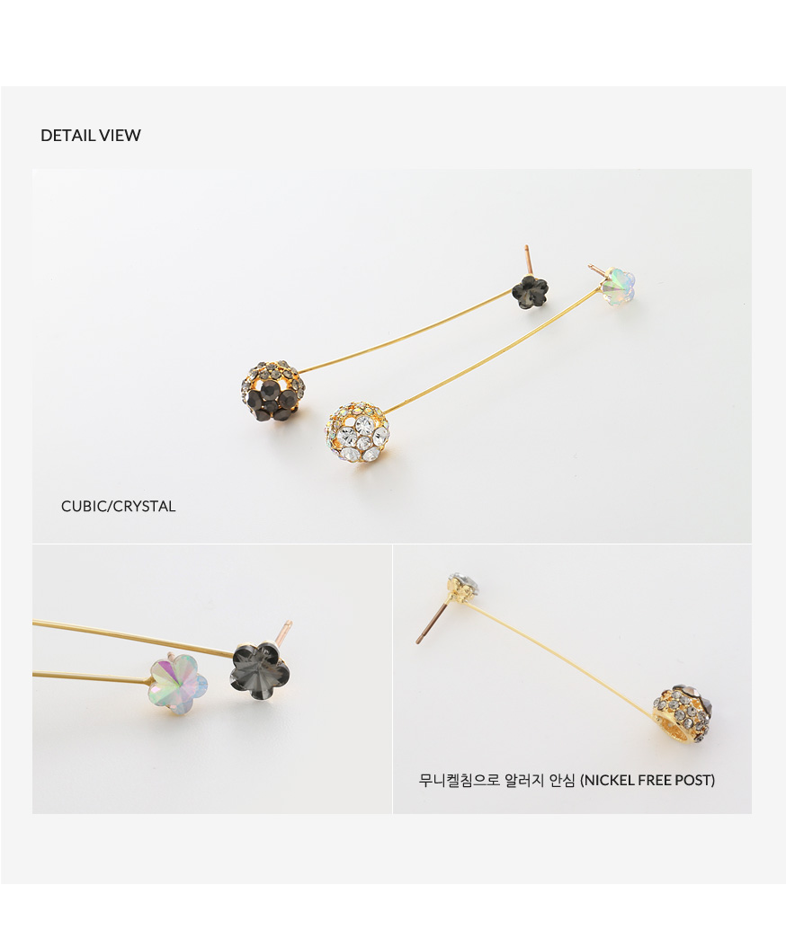 귓볼에 붙는 큐빅에서부터 스틱을 따라 드롭된 큐빅 팬던트까지