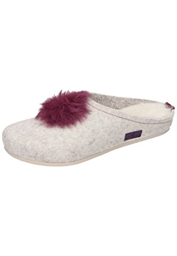 Product DescriptionManitu-Home Damen-Pantolette Damenpantoffel flach, lila/offwhite, Filz, echter Fellbesatz, echte Felldecksohle, Leichtzellsohle0