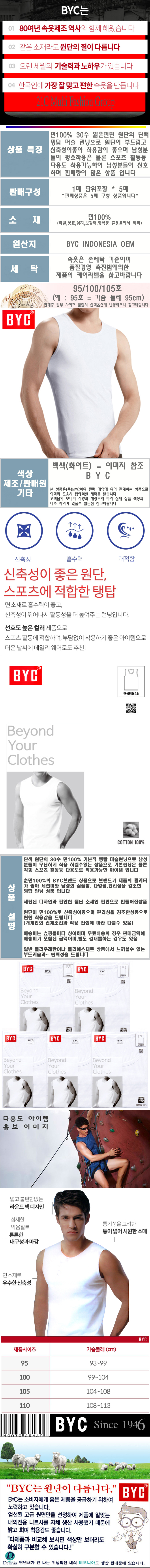 BYC 탱탑런닝으로 장기간 착용하여도 편안한 느낌을 드리는 면100% 상품 입니다