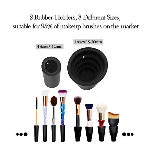 - NEWLY DESIGN: 2 flexible silicone collars, 8 different sizes, suitable for 95% of makeup brushes on the market. Two choices are more convenient, time-saving and energy-saving.