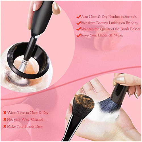 - FAST & CONVENIENT: Upgraded makeup brush cleaner, clean and dry the brushes in 360 rotation, the rotating speed of the brush clean machine reaches 12000-13000 r/ m. Clean and dry your makeup brushes in seconds which is time-saving and energy-saving and also prevents your hands from getting wet and dirty.