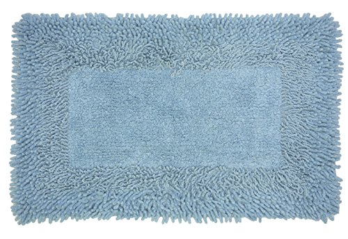 Spura Home 21"x34" Cotton Sky Thick Shag Border W/Plain Center Bath Mat