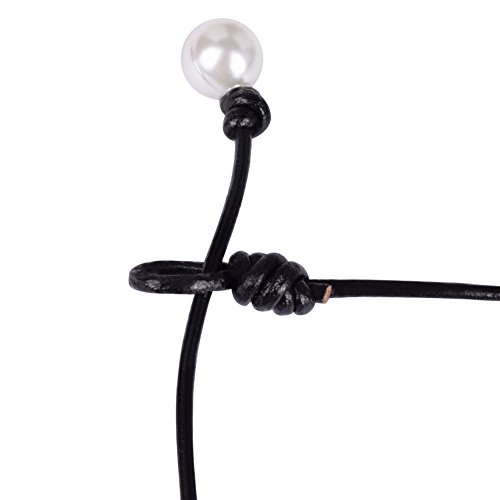>Production MethodPearls are double-knotted on round leather cord, a pearl and loop is used for closure.