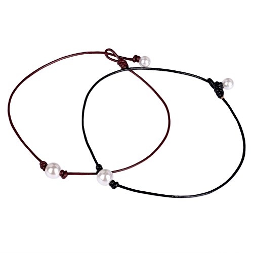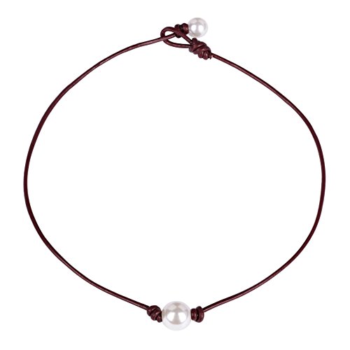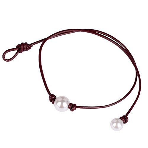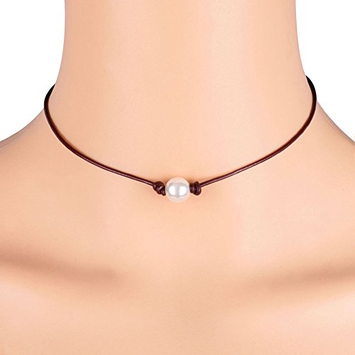 Handmade pearl leather choker necklace is good gift for girls,teens,friends present