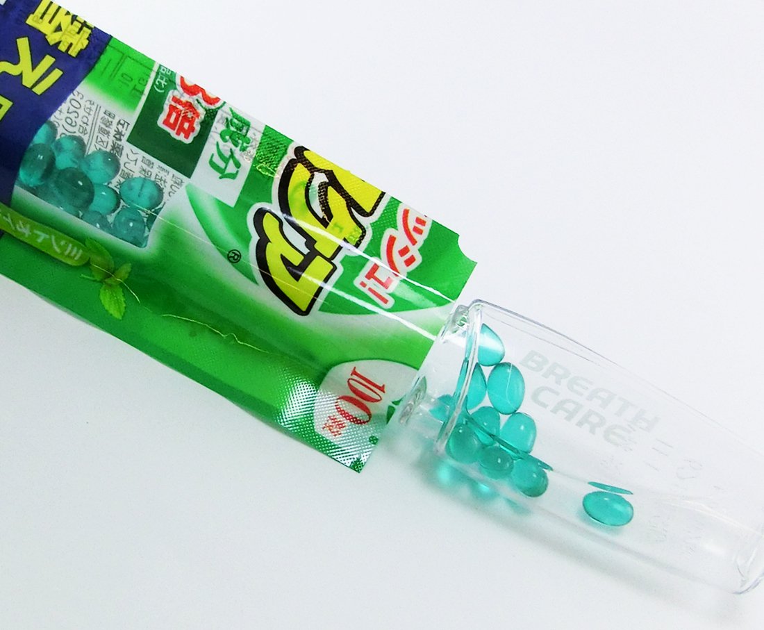 "Bless Care Tinted Mint" is a breath freshening capsule (spearmint, parsley oil etc. formulated) to drink with water.