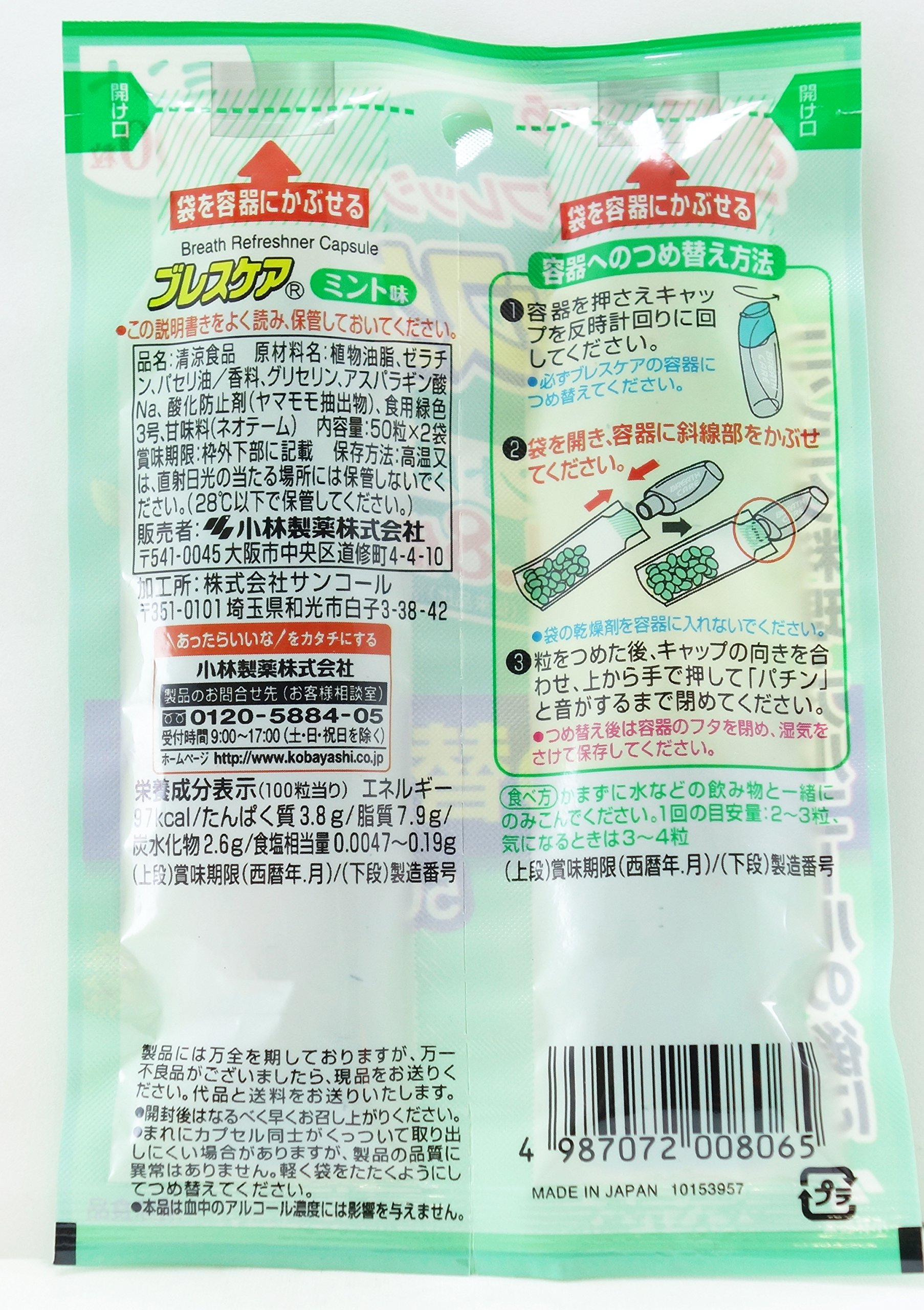 "Breath care" is not a melting in your mouth, but a capsule that reaches directly into the stomach under the odor and refreshes from the source of the odor.