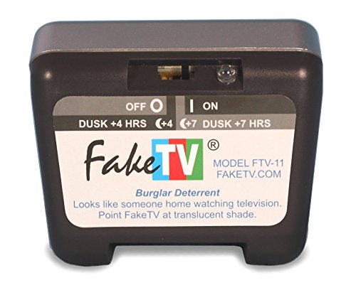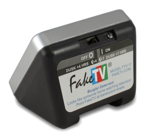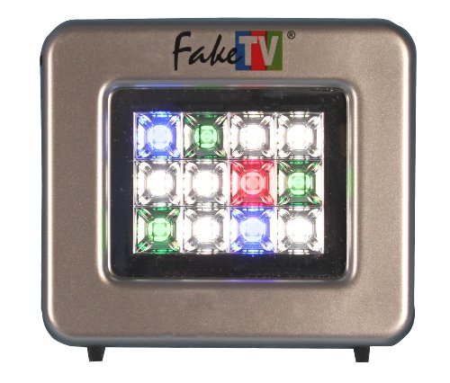 FakeTV is a burglar deterrent that recreates the light of a real hdtv television. So from outside, it looks just like someone is home watching tv. Most burglars do not target occupied houses. Why risk prison? So when a prowler sees that flickering glow that means someone is home watching tv, he knows to move on to an easier target. So, FakeTV makes a break-in less likely. Our model ftv-11 is three times brighter than our model ftv-10 and ftv-7 FakeTV's built-in computer controls 12 super-bright leds that fill a room with light. It accurately simulates scene changes, fades, and on-screen motion, in thousand of possible shades of color, just like real tv. A built-in light sensor turns FakeTV on at dusk, and it can be set to turn off after four or seven hours. The dynamic light from FakeTV conveys the impression of "alive" in a way that a light on a timer cannot. Consumes just the power of a night light. AC adapter included.Feature