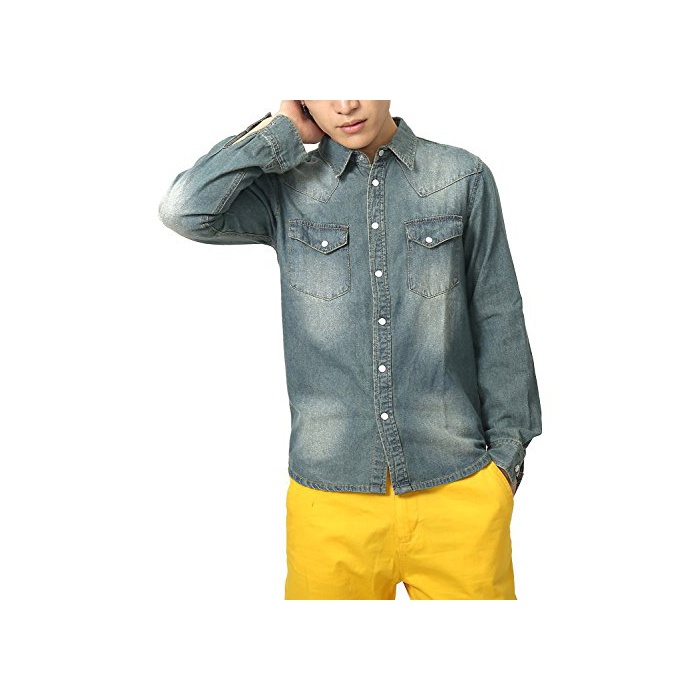 (re pea 드) REPIDO 데님 셔츠 맨즈 긴 소매 셔츠 캐주얼 긴 소매 셔츠 빈티지 가공 긴 소매 데님 셔츠 박수