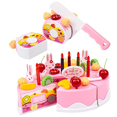 -. Title : [ドリーマー] おもちゃ ケーキ おままごと 料理ごっこ遊び 知育玩具 食品 食べ物 キッチンセット 誕生日 マグネット クッキー キャンドル付き ナイフ カップケーキ 無臭無毒 DIY 54ピース ピンク 可愛い