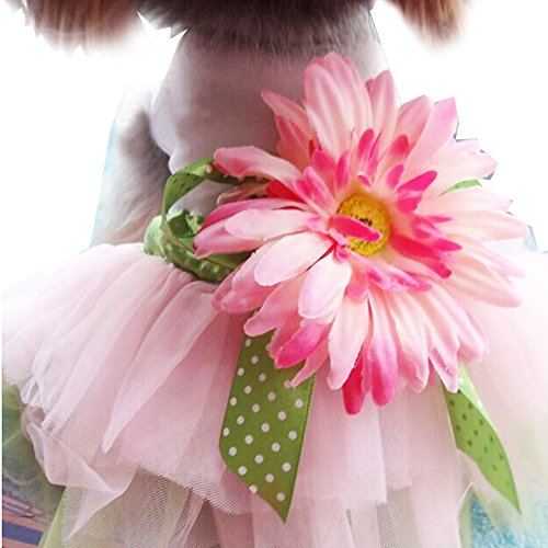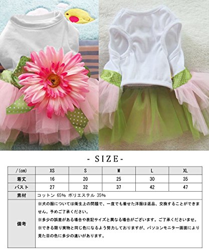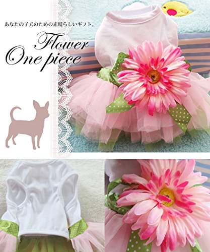 白を基調とし、ピンクと緑のチュール、可愛いドット模様のリボンでワンピースを彩ります♪