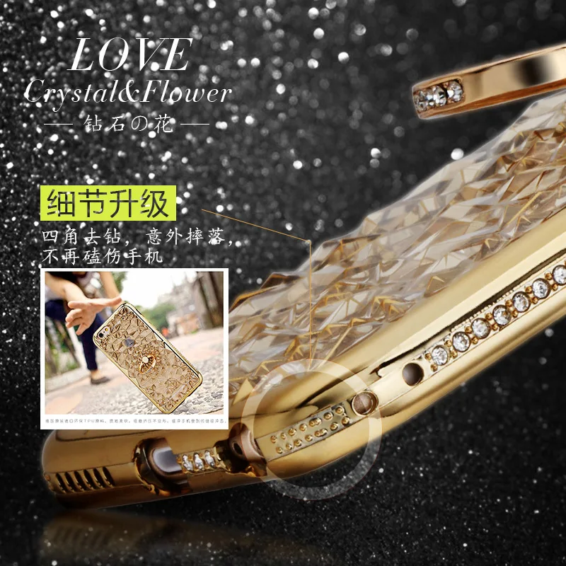 Type:Luxury 3D Diamond Flowers Soft TPU Crystal Plating