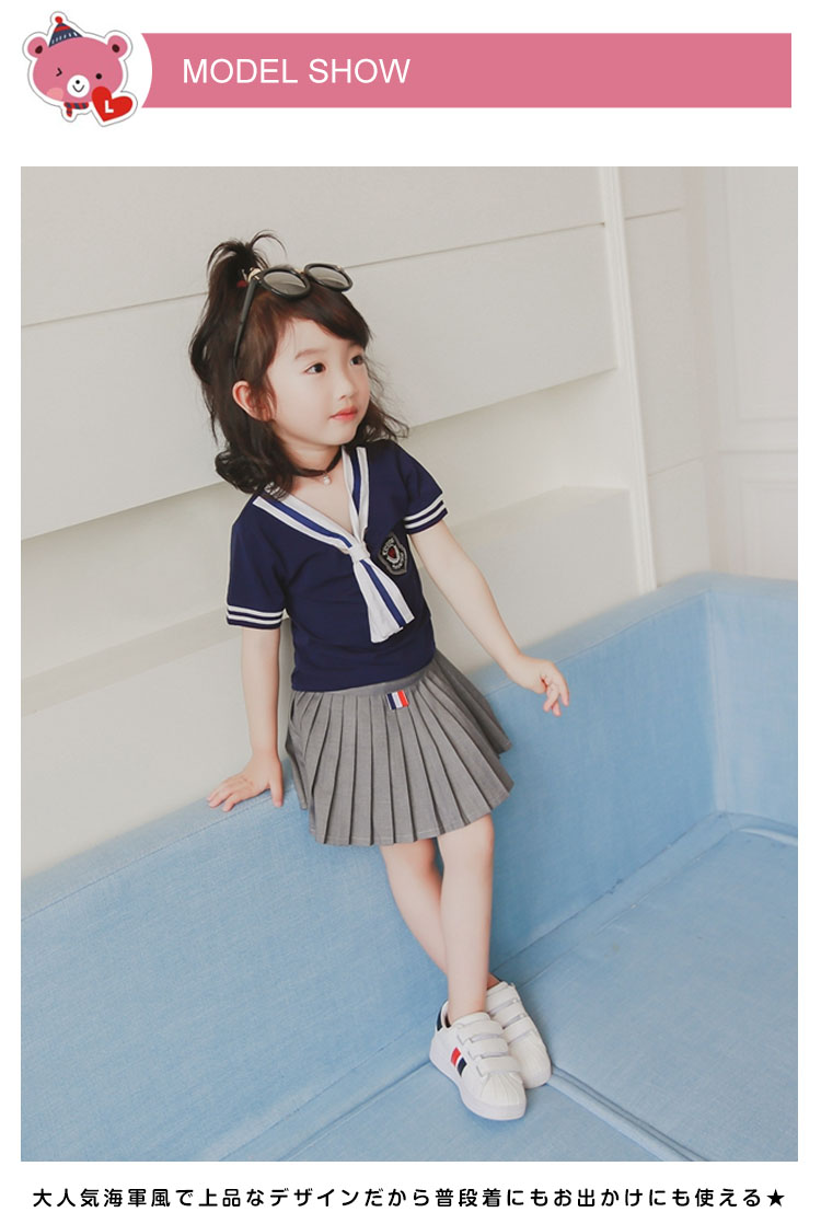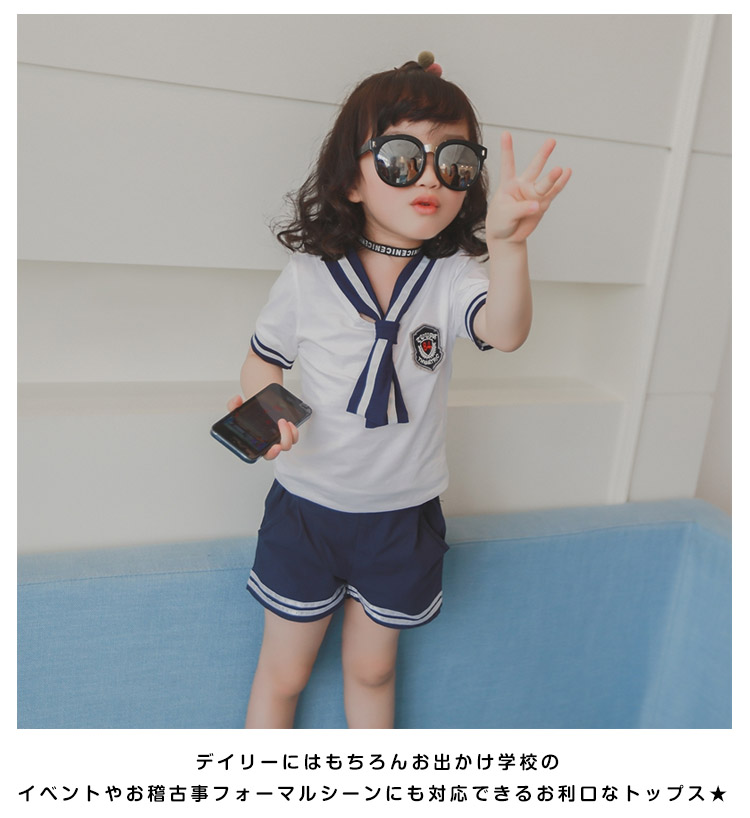 | 素材的には綿混紡使用され肌触りにも優しくて着心地抜群★大人気海軍風で上品なデザインだから普段着にもお出かけにも使える★ デイリーにはもちろんお出かけ学校のイベントやお稽古事フォーマルシーンにも対応できるお利口なトップス★ | |