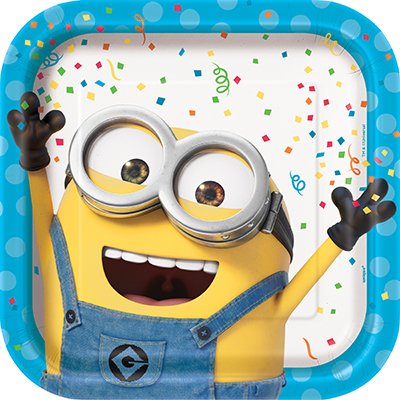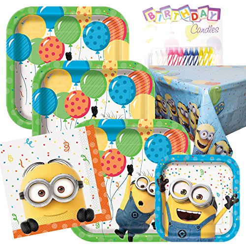 Despicable Me Theme Plates and Napkins Serves 8 With Table Cover And Birthday Candles