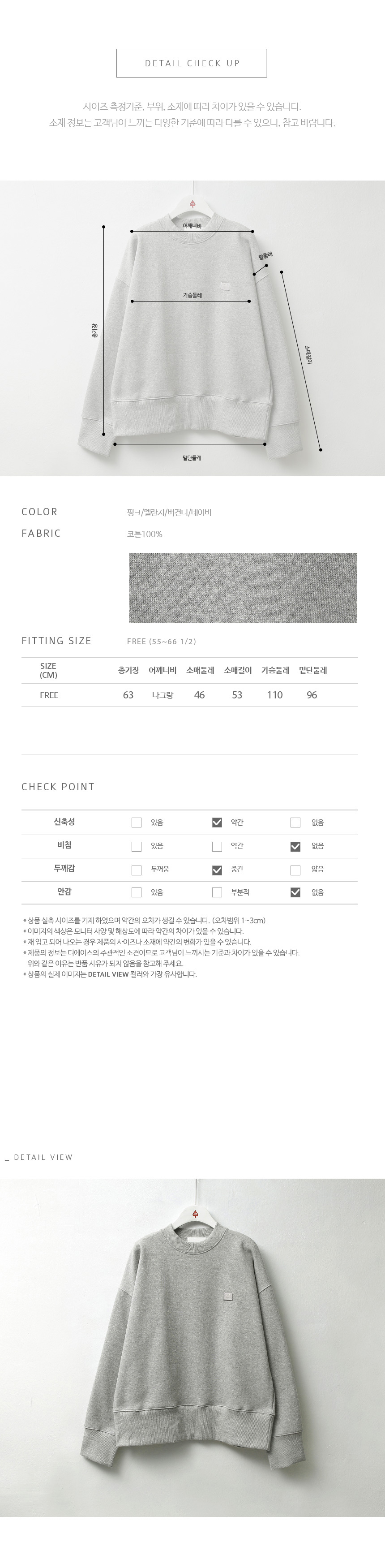 다양하게 코디하기 좋은 부피감의 맨투맨이랍니다^^
