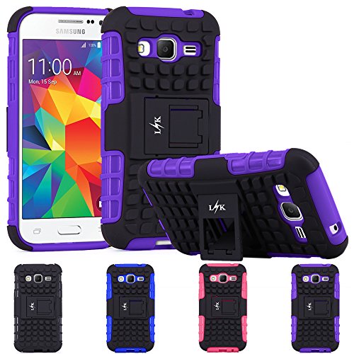 Grand Prime Case, LK [Shock Absorption] Hybrid Dual Layer Armor Defender Protective Case Cover with Kickstand for Samsung Galaxy Grand Prime, Purple