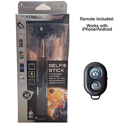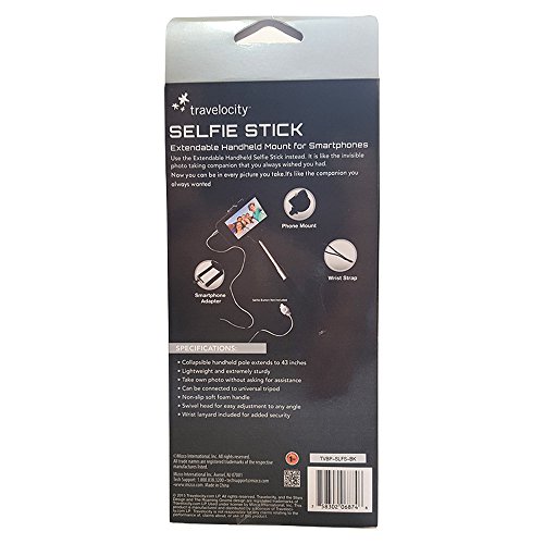 Travelocity Selfie Stick Extendable Handheld Mount for Smartphones With Remote Control
