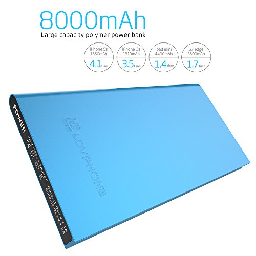 Power Bank - LOVPHONE 8000mAh Ultra Slim Power Bank Dual SMART USB Ports Portable Battery Charger Power Bank for iPhone,iPad,iPod,Samsung Galaxy,Cell Phones,Tablets-(Blue)