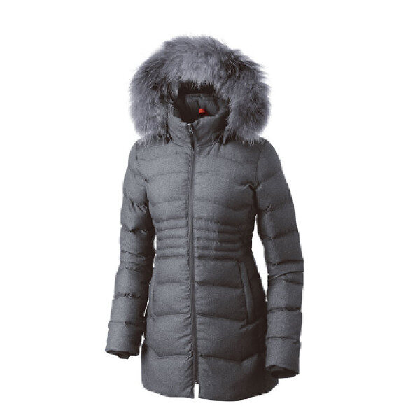 멜란지 울터치 소재를 사용하고 컬러감 있는 FUR로 포인트를 준 타운웨어형 하프 다운 자켓.