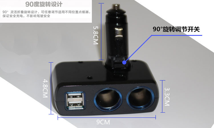 Tips: distributor for automotive electrical use, do not support the cigarette lighter heating. Plug can be rotated 90 degrees