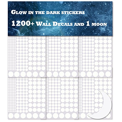 Glow in the Dark Star Decals Glowing Reusable Ceiling Décor of 1447Pcs Dots Plus Moon and Constellation Guide Perfect For Kids Bedding Room or Media Room, Beautiful Wall Decals